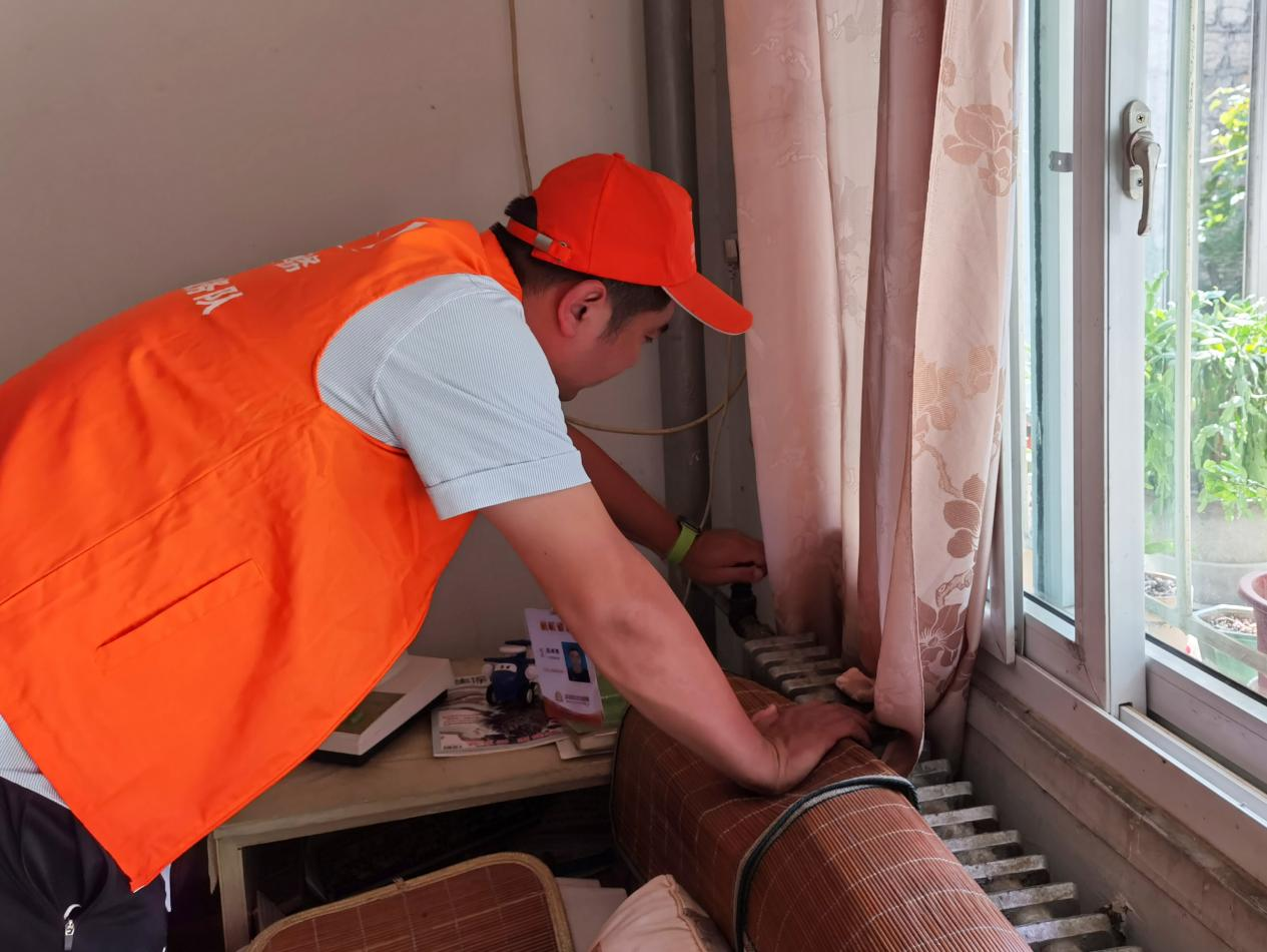 随后,志愿者来到38号楼年逾九旬的张老师家里,帮助老人检修家中的供暖设施。刚走进院内,张老师便笑着迎出来,高兴地拉着工作人员的手说:“能源集团的同志来啦,我们是老朋友啦!”工作人员也热情地询问老人近况,送上诚挚的节日祝福。供暖管家吴卓奇为老人细心检查家中供热设备,并送上了管家名片。他告诉张老师:“家里有着急解决的问题时,随时拨打我们的管家热线,一站式服务送到您家!”青年志愿者们还与老人们面对面深入交谈,详细询问他们在用暖过程中遇到的问题与困难,手把手教老人线上办理各项用热业务,排查检修采暖设施,在美好的节日中忙得不亦乐乎。