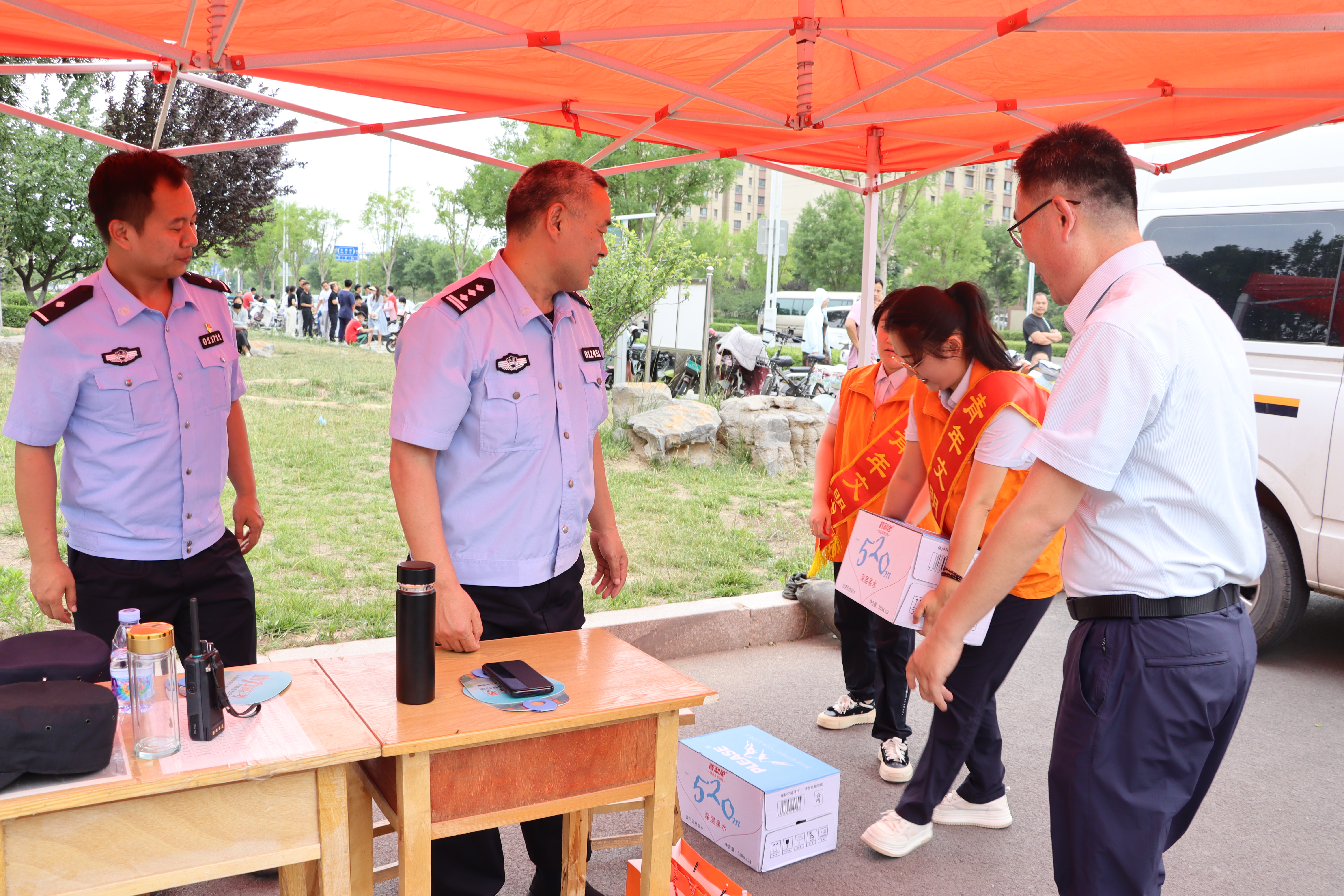 盛夏时节,浓浓的凉意给考生送来“降温”关怀。在商河一中考点,志愿者们有序地开展爱心服务行动,在规定区域将桌椅、遮阳棚整齐摆放好,并且提前把矿泉水、纸巾、文具等爱心物资,免费向考生、等待的家长以及周边的工作者提供爱心服务。“这已经是我连续第三年参与爱心助考行动了,每一次都有着不一样的感受,身为能源青年,大家一直都在用行动传递着社会正能量,传播和弘扬‘奉献、友爱、互助、进步’的志愿服务理念。祝愿所有考生们金榜题名,旗开得胜!”商河恒泰的青年志愿者王新锴说。