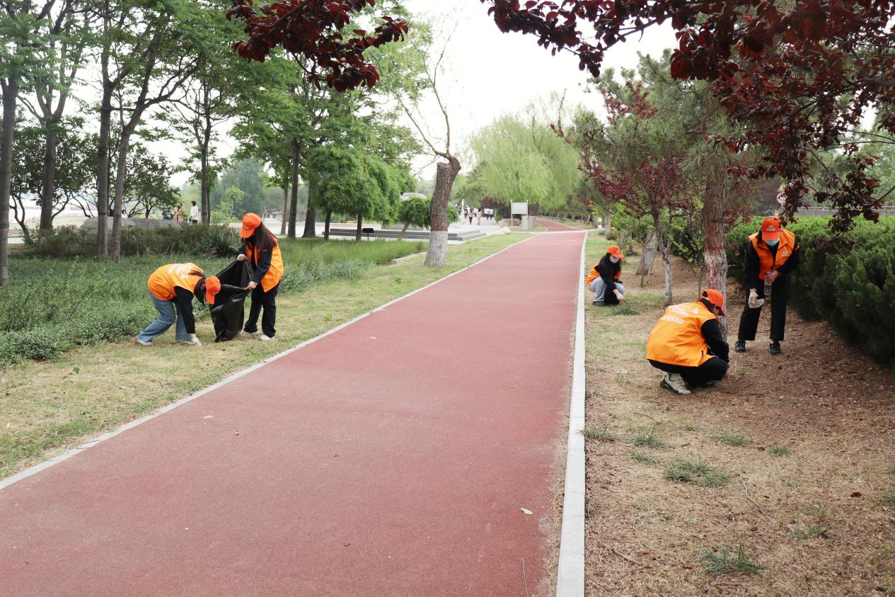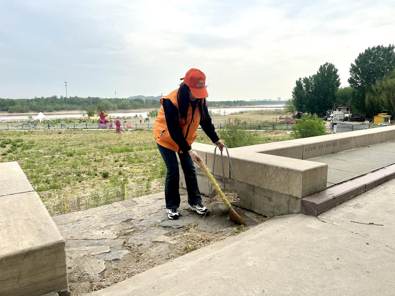 活动当日,党员、团员青年们满怀热忱地在黄河边集结。大家迅速分组,领取手套、垃圾袋等工具后,便有序地沿着蜿蜒的黄河堤坝散开,正式开启垃圾清理工作。他们有的俯身穿梭在河畔草坪间,将藏匿其中的塑料瓶、零食包装袋一一捡出;有的手持扫帚,将路上散落的树枝一一扫拢。每个人的眼神中都透着坚定与专注,手中的动作一刻不停,默契协作的场景成为黄河岸边一道温暖而动人的风景线。