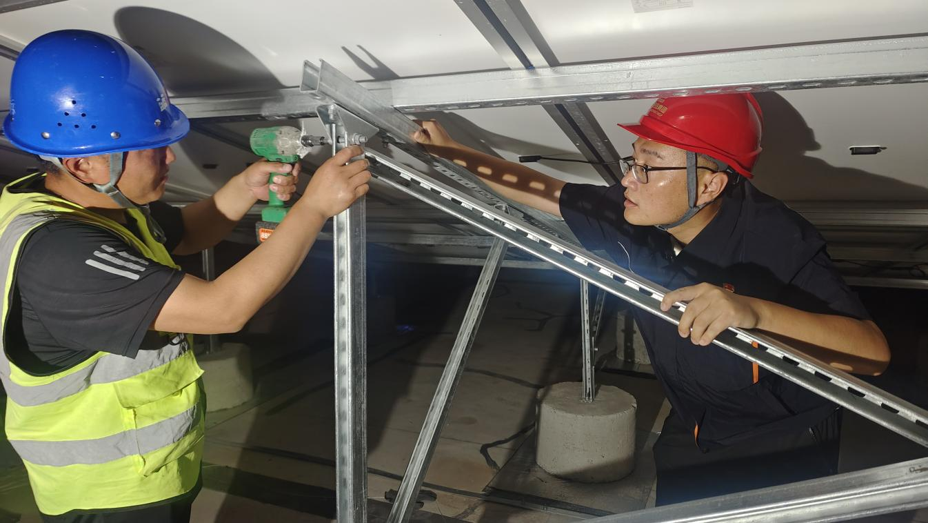 在众多项目施工过程中,济南技师学院项目显得尤为特殊。为最大限度减少施工对教学秩序的影响,项目团队与校方反复研讨,制定出“错峰施工、无缝衔接”的施工方案,将项目拆解为多个紧密衔接的施工阶段,高效推进各施工阶段任务,全力保障了项目的顺利实施。同时,品质与速度并重,项目团队构建起覆盖全流程的“硬核”品质管控网,从原材料进场检验到隐蔽工程验收,每一个环节都设置了严格的“质量关卡”。建立“日调度、周总结、月复盘”的动态调整机制,根据现场实际情况灵活优化施工方案,确保每一道工序都精准高效。在这种高强度、高效率的施工节奏下,各施工节点被逐一攻克,项目进度远超预期。