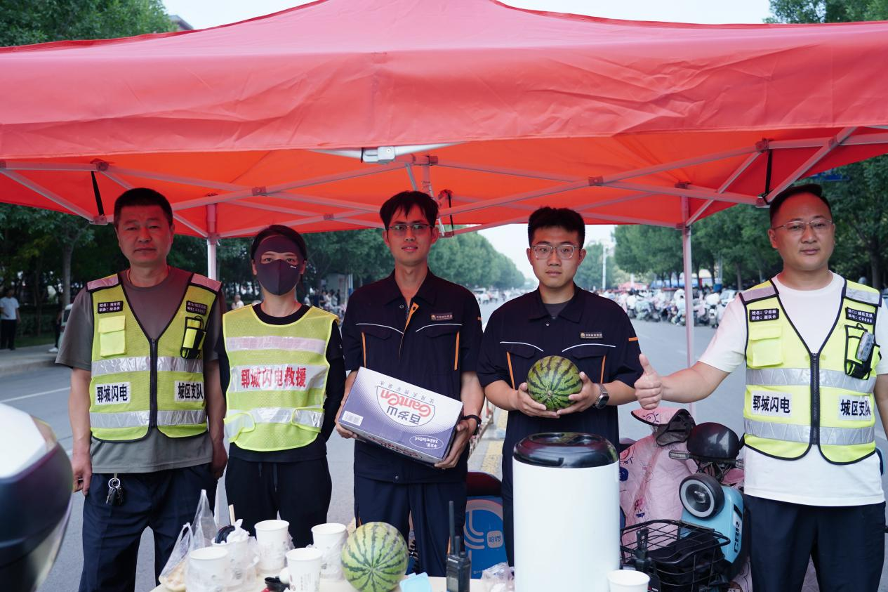 志愿者们还为在高温下坚守岗位的工作人员送去了西瓜、矿泉水等降暑物资,感谢他们为保障中考顺利进行付出的辛勤努力。