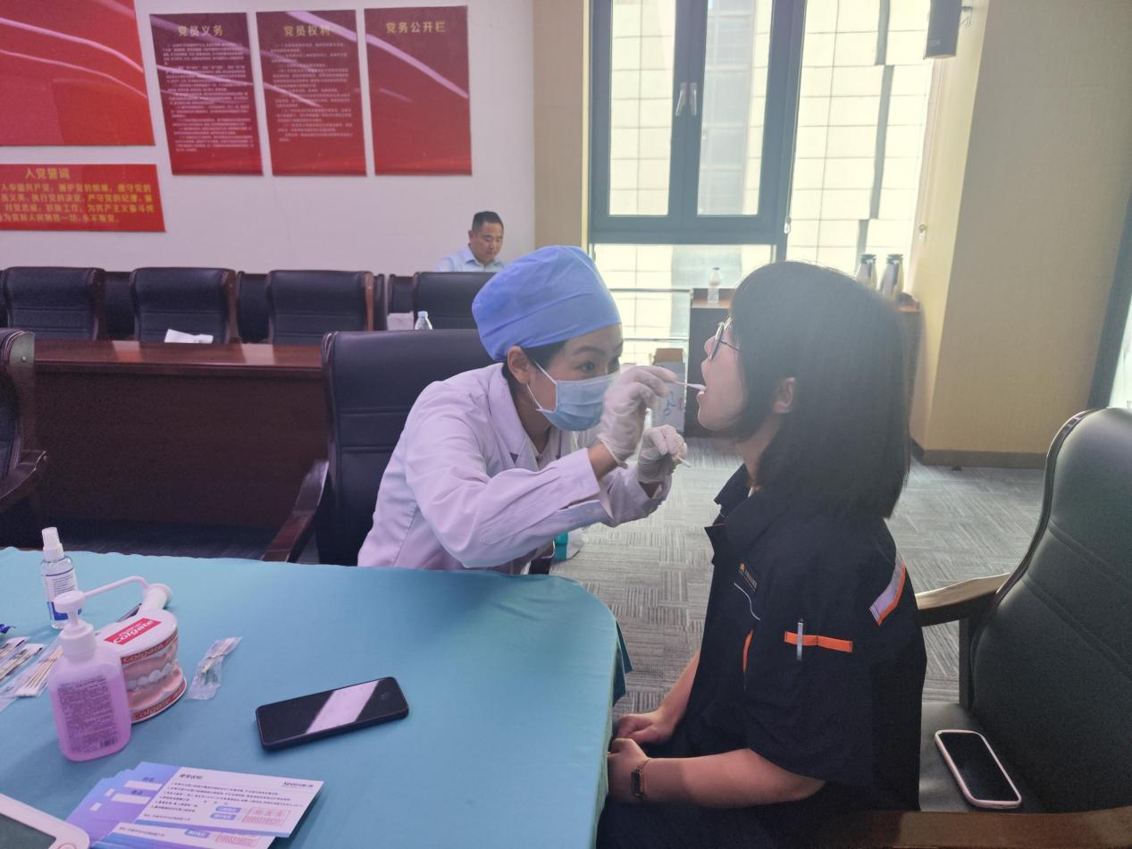 本次活动旨在为职工提供便捷的口腔健康服务,帮助大家早发现、早预防口腔疾病。义诊当天,来自可恩口腔医院的两位资深医师携带口腔检查器械、模型教具等,为职工提供免费口腔检查、健康咨询、护牙知识讲解等服务。