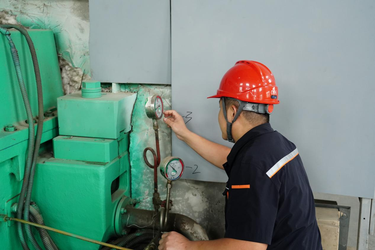 为了在双节期间兼顾机组运行与检修进度,生产部提前制定了科学细致的排班方案。“运行中的一号机组实行‘三班倒’制度,每个班次都有专人紧盯设备参数、巡查运行状态,确保机组零故障稳定发电;原本负责二号机组的8名员工,全部调整为长白班,集中精力投入检修工作。”董兴荣解释道,两台机组共配备17名员工,每台机组日常运维需8人,如今通过人员统筹调配,既保障了运行机组的安全,也为检修工作提速增效。